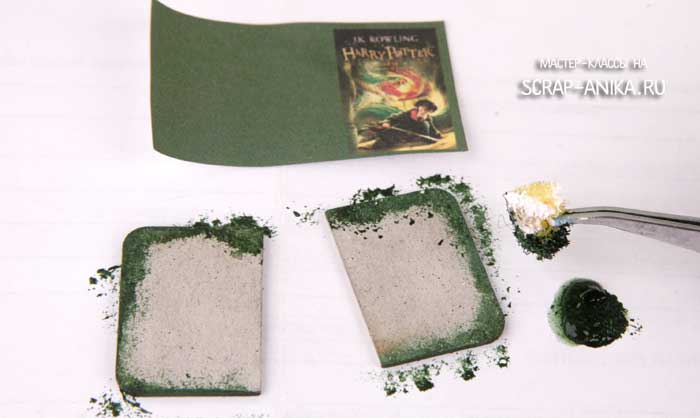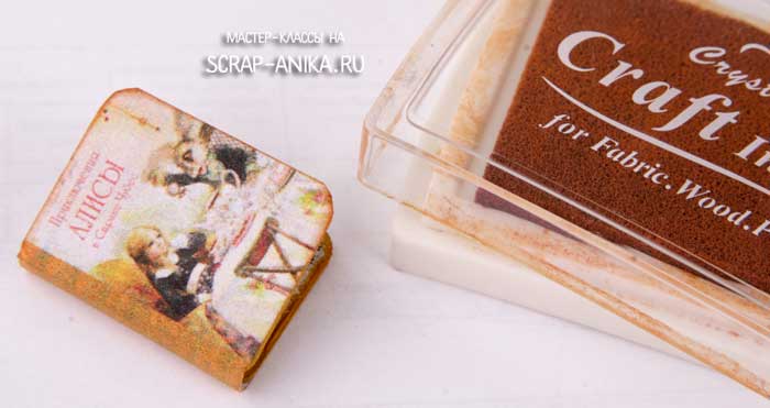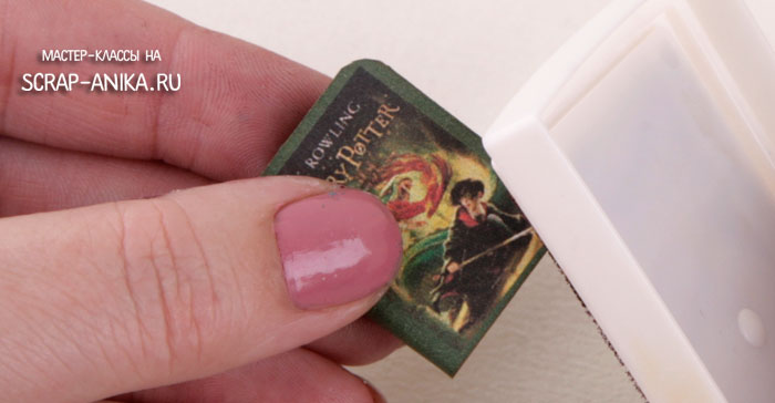 6. Обрабатываю края и углы на книге штемпельной подушкой.