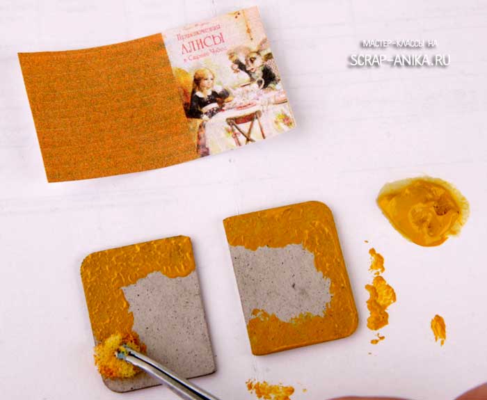 2. Тонируем края книжного блока светлой краской. Я стараюсь не прокрашивать края полностью. Так они имеют естественный вид книжки, которую читали.