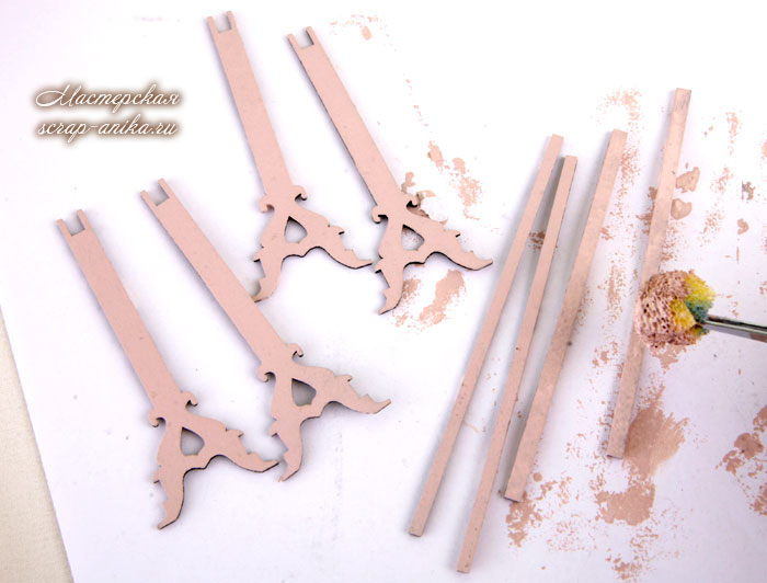 1. Окрашиваем базовой краской все детали с одной стороны, а нижние соединительные перекладины - с двух.