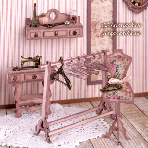 Напольная вешалка готова. К напольной вешалке я разработала плечики нескольких размеров. Осталось их покрасить и можно вешать кукольную одежду :)