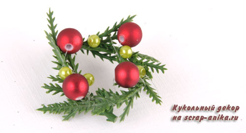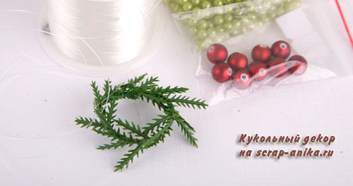 Отдельную еловую веточку скручиваем в кольцо и обматываем леской, прихватывая торчащие лапы.