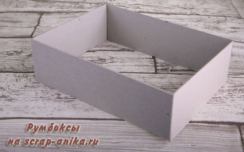Из переплетного картона толщиной 1,5 мм вырезаем основу, которая идеально войдет в рамку и бортики. Ширина бортиков будет зависеть от того, что Вы хотите поместить в свой румбокс (я для своих беру 6 см). Моя рама имеет размер 20х15 см. Значит, основа будет 20х15х6см (1 шт.), а бортики 20х6 см (2 шт) и 14,7х6 см (2 шт). Начнем сборку как раз с этой коробочки. Она должна получиться размером 20х15х6 см.