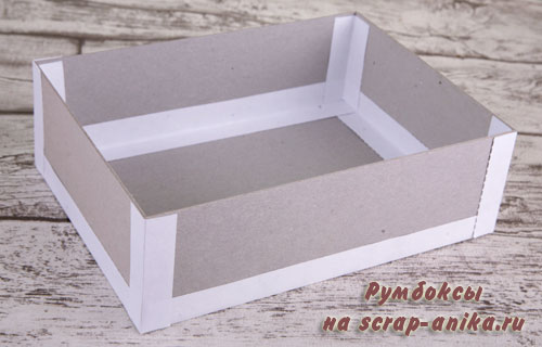 Сгибаем полосы пополам и обклеиваем ими все внешние и внутренние углы, тем самым укрепляя основу нашего румбокса.