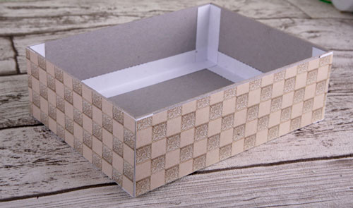 По периметру внешнюю часть коробки обклеиваем бумагой с рисунком, близким по цвету к рамке.