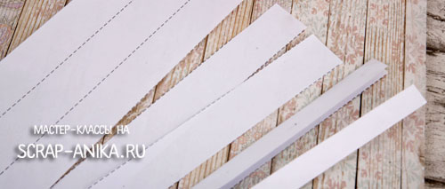 Берем белый лист бумаги и разрезаем его на полосы по 3 см.