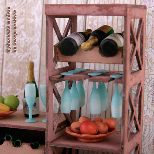 Обратите внимание - кроме полки для бокалов я вклеила ящик для винных бутылок.