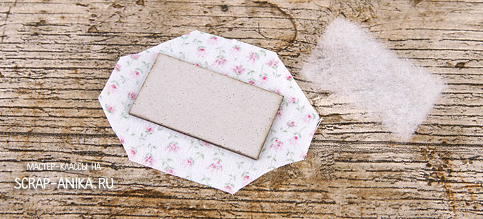 Для этого вырезаем прямоугольник чуть больше основы. Срезаем углы наискосок.