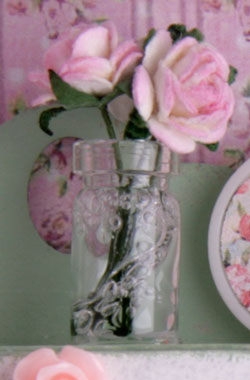 8. берем одну из стеклянных бутылочек. Наливаем в нее немного клея и вставляем 3 розочки.