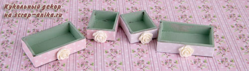 12. В наборе из тонкой бумаги у Вас есть полоски, обклеиваем ими ящики. Приклеиваем на фронтальные части по декоративной розочке (8.77).