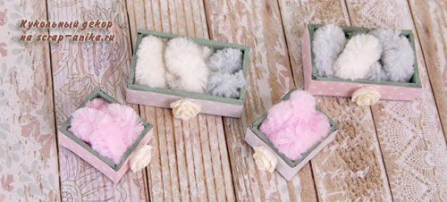 13. В ящики вклеиваем плюшевую пряжу.
