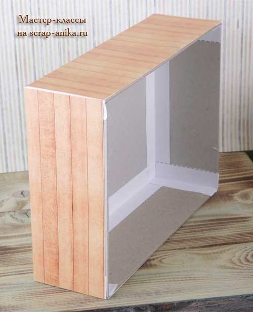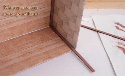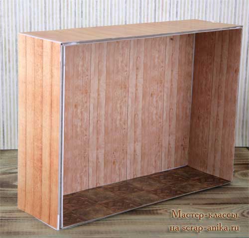 2. Внутренние стены короба обклеиваем бумагой с листов 2 и 3. Стены - досточки, полы - паркет, потолок - плитка.