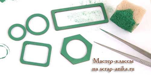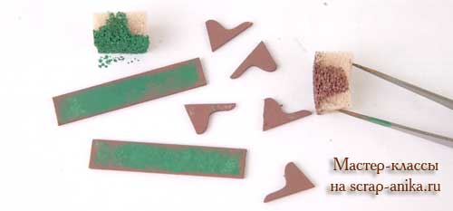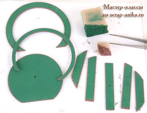 7. Окрашиваем детали с одной стороны зеленой краской, тонируем края темно-коричневой.