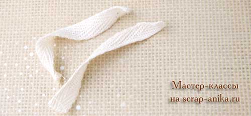 25. В наборе есть кусочек киперной ленты. Разрезаем ее пополам. Это будут наши полотенца.
