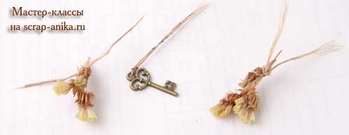27. На две из веревочек подвешиваем сухоцветы. На третью - подвеску - ключик.
