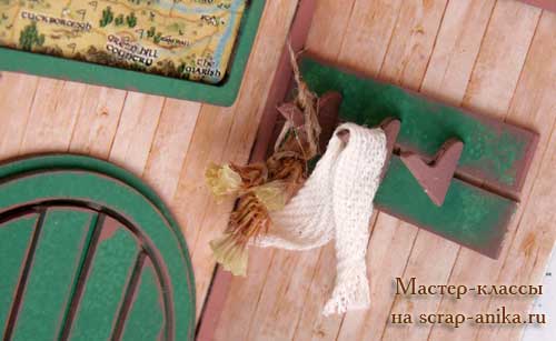 28. Приклеиваем вешалку на место. На один из крючков на бечевку подвешиваем сухоцветы. На тот, что посередине - полотенце. Третий оставим пустой.