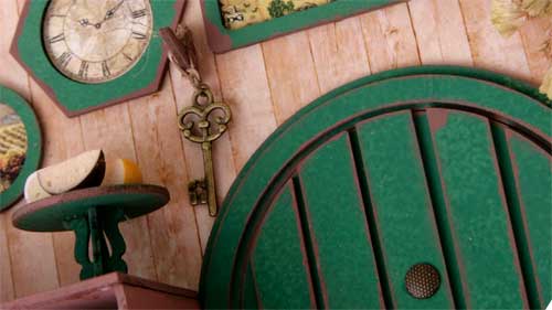 29. На стену около двери приклеиваем 4-й крючок. На него - бечевку с ключиком.
