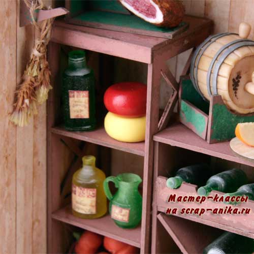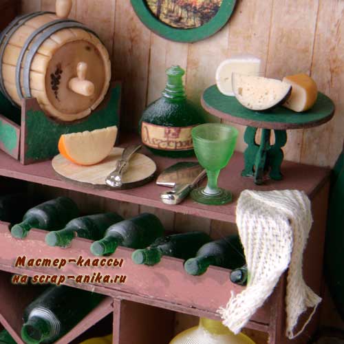На самом деле, бутылок во времена хоббитов не было. Они появились гораздо позже. Поэтому здесь присутствие бутылок - анахронизм. Но погребок без бутылок будет уж совсем скучным. Поэтому для этого румбокса я разработала серию "старинных" бутылок, чтобы погреб не смотрелся современным.Современные винные бутылки и бутылки шампанского мы спрячем в шкафы.
