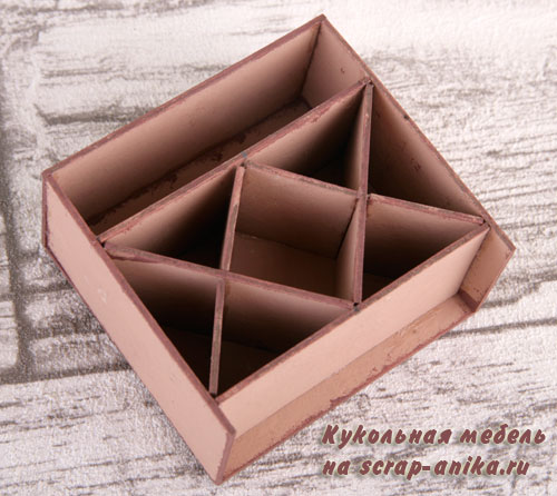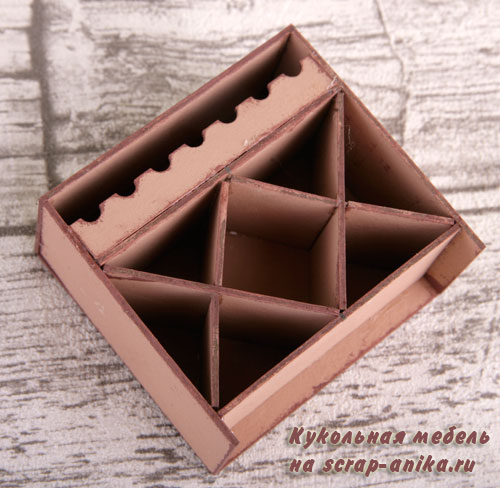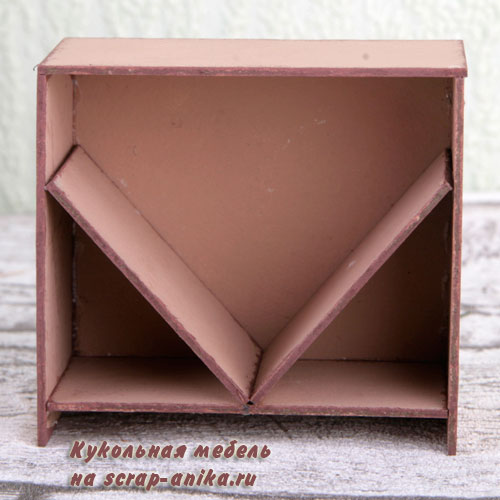 5. Из перегородок берем две самые длинные. Ставим их буквой V на нижнюю полочку.