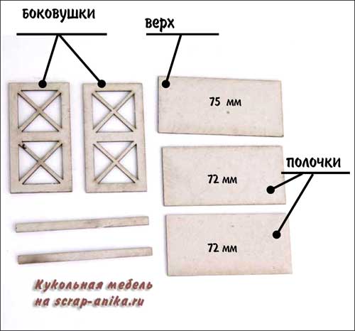 Между декоративными проемами приклеиваем полочки. Соответственно, 2 проема - 2 полки, 3 проема - 3 полки, 4 проема - 4 полки.