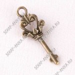 Подвеска двусторонняя Ключик 3D, литьё, цвет бронза, 35х15x7 мм, цена за 1 шт.