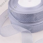Лента серая органза в мелкий белый горошек.  Ширина 25 мм. Цена за 1 м. Продается метражом.