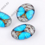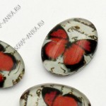 Кабошон Бабочка-5. Стеклянный, овальный. Размер 18х13 мм. Высота ок. 3 мм. Цена за 1 шт.