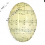 Кабошон 43 "Ноты". Стеклянный, овальный. Размер 18х13х3 мм. Цена за 1 шт.