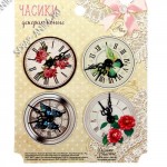 Набор декоративных часиков "La Botanique" (297), 10,5 х 13,5 см. Диаметр часов ок. 4 см.