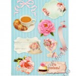 Наклейки 60_04. БЛОКНОТ. ШЕББИ ШИК. На одном листе собрано 25 картинок в одной цветовой гамме. Цифровая типографская печать. На фото изображение целого листа. Печатная область на листе 20,5х29 см. Бумага самоклейка односторонняя. Цена за 1 лист.
