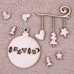 Набор чипов "Новогодний". В набор входит 1 шарик с мелким рисунком, 1 подвеска, 5 мелких предметов. Размер шарика ок. 50х63 мм. Материал: пивной картон. Цена за упаковку из 7 предметов.