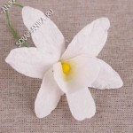 Орхидея, цвет белый+желтый, диаметр ок. 4см. Длина стебля ок 6 см. Цена за 1 шт.