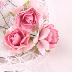 Розочки "кудрявые". Цвет белый+розовый. 3 см. Имеют проволочный стебелек. Цена за 3 шт.