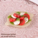 Нарезка огурцы / помидоры на большой тарелке (миниатюра). Масштаб 1:12. Полимерная глина, ручная работа. Размер тарелочки ок. 2 см. ВНИМАНИЕ! Маленький размер. Не рекомендуется для игры детям до 3-х лет.