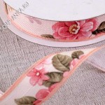 Тесьма декоративная 69. Цветы на розовом фоне. Ширина ленты около 25 мм. Цена за 1 м.