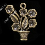Подвеска Череп с розой. Цвет бронза с патиной. Размер 28х18х6 мм. Цена за 1 шт.