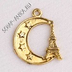 Подвеска "Эйфелева башня с полумесяцем". Литьё, цвет античное золото, 22х18х2мм. Цена за 1 шт.