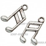 Подвеска нотки, цвет античное серебро, р-р 14.5х9х1.2мм, цена за 2 шт.