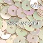 Пайетки 6,5мм цвет белый, круглые, гладкие, радужное покрытие, цена за упаковку ок. 3 гр. (ок. 250 шт.)
