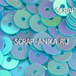 Пайетки 6,5мм цвет голубой, круглые, гладкие, радужное покрытие, цена за упаковку ок. 3 гр. (ок. 250 шт.)