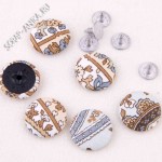 Пуговицы-компаньоны 21. Гвоздики. Обтяжка хлопковой тканью. Размер пуговицы ок. 18 мм. Высота 3 мм. Основа пластиковая (черная). Основа для обтяжки - металлическая. Гвоздик металлический. Цена за набор из 5 шт. Рисунки в разных наборах могут различаться,