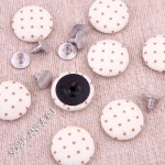 Пуговки-гвоздики. Предназначены для соединения большого количества слоев ткани и бумаги, декорирования сходящихся швов. Соединяются с помощью удара молоточком.