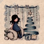 Мотив-41. Купон на льне, девочка Gorjuss, размер рисунка около 12х9 см, цена за 1 шт.