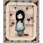 Мотив-44. Купон на льне, девочка Gorjuss, размер рисунка около 12х9 см, цена за 1 шт.