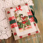 Обложка на паспорт №6. Размер 11х14,5 см. Обложка выполнена из льна, приятная на ощупь. Внутренняя часть - пластиковая вставка. Декор: хлопковое кружево, атласная ленточка, картинка (плотная бумага), брадс, пуговица из перламутра. Цена за 1 шт.