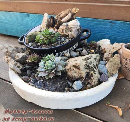 композиция из молодил, альпинарий из молодил, горка из молодил