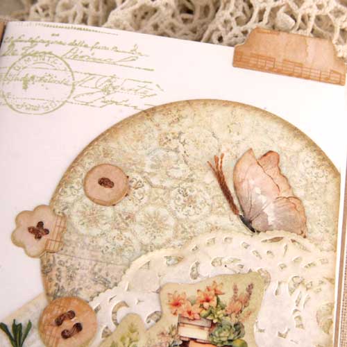 Бумага взята из наших коллекций. Дополнительный декор: вырубка пуговок и использование тех же ниток мулине, что и на обложке.