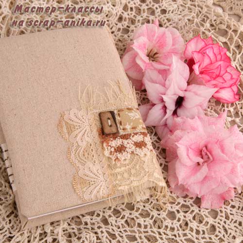 Обложка этого блокнота выполнена в технике "Текстильный коллаж", по которому я написала подробный мастер класс.