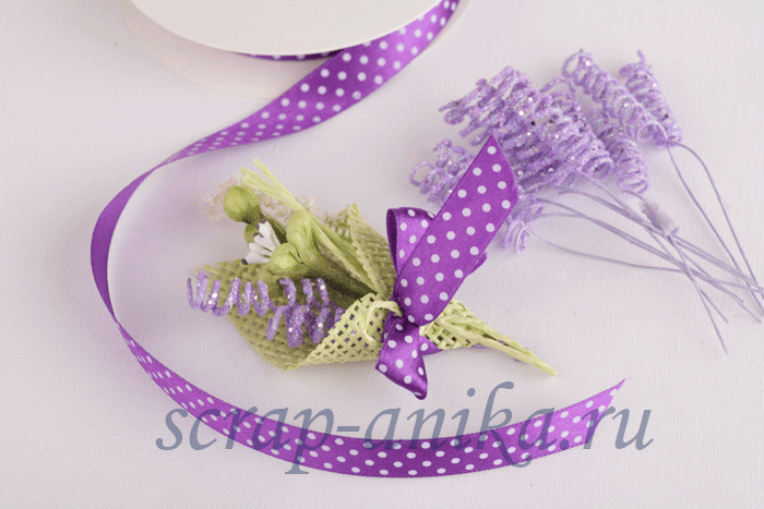 1. Составляем букет из нескольких цветов и перевязываем его красивой ленточкой