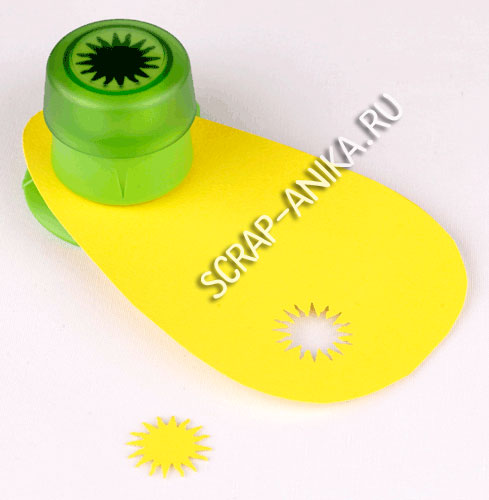 Дыроколом пробила солнышко (не выбрасывайте остатки - их в дальнейшем можно использовать как трафарет)