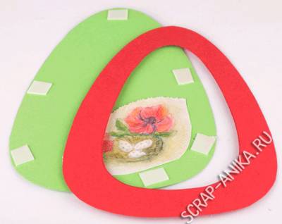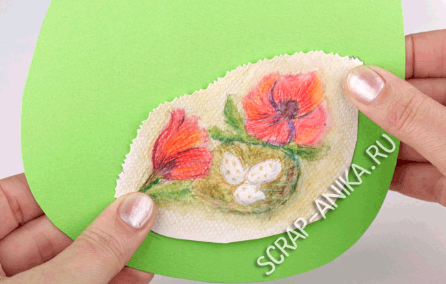 Приклеить нарисованный мотив. Не забудьте приложить верхнюю часть открытки, чтобы увидеть, правильно ли клеите.